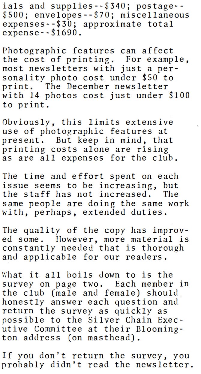 In January 1978, a Silver Chain Newsletter contributor known as “The Kaptain” asked the club’s members to complete a survey.