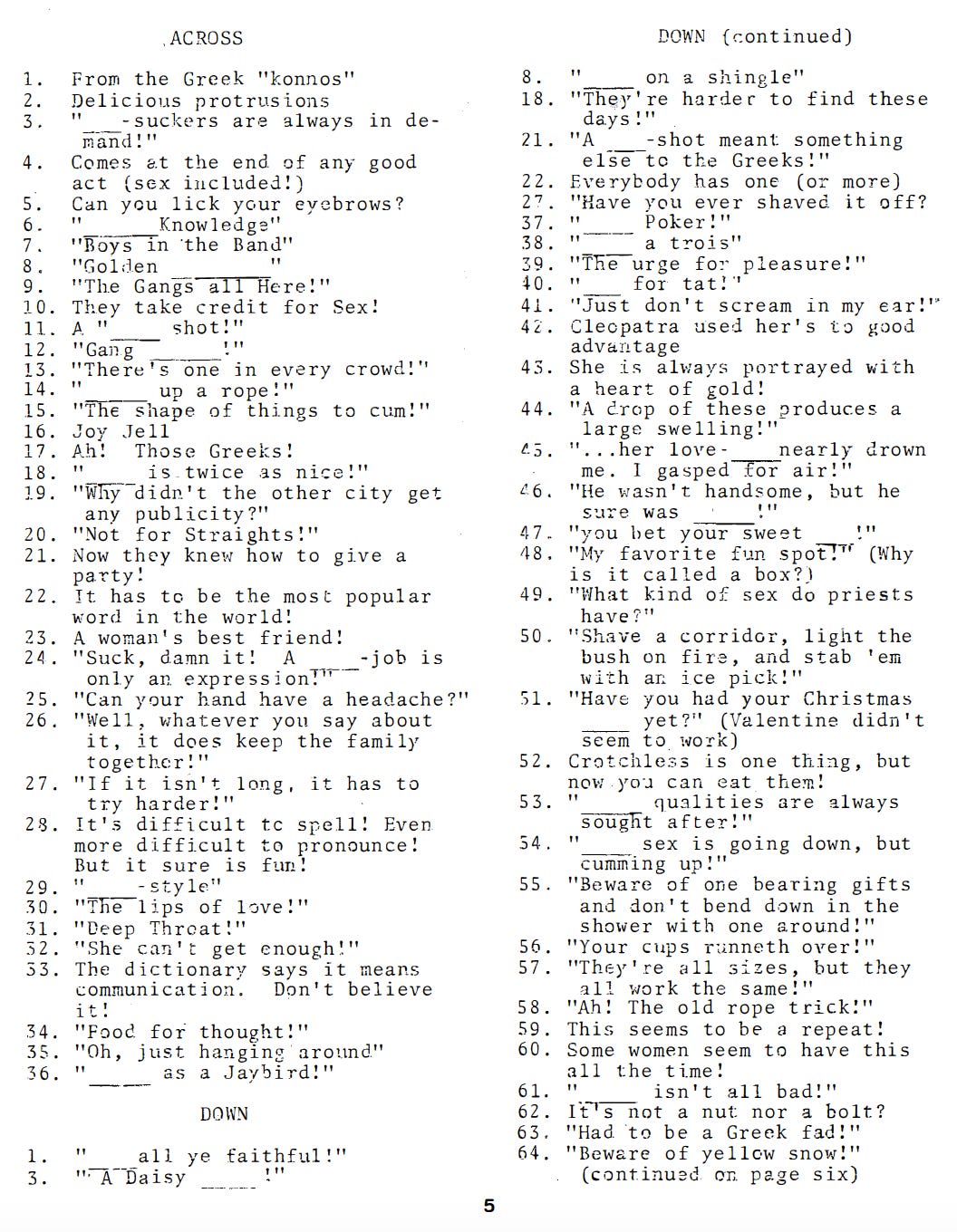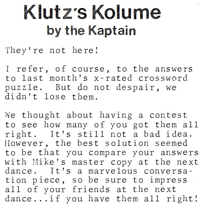 Some of my favorite Sunday activities are sleeping in, eating blueberry pancakes, staring lovingly into my geriatric dog’s eyes, and attempting crossword puzzles. But since I can’t solve the NYT, I turned to this one in The Silver Chain’s January 1977 newsletter instead: